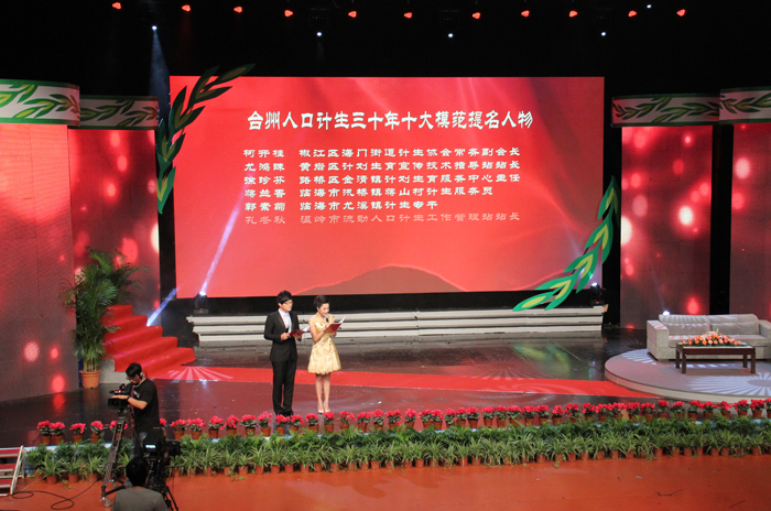 我公司負(fù)責(zé)LED視頻設(shè)計、高清人物VCR拍攝制作、現(xiàn)場視頻高清導(dǎo)播?!皣咧狻薄_州人口計生三十年模范人物(群體)頒獎典禮在市廣電總臺演播大廳舉行。