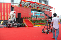 經(jīng)典影視負(fù)責(zé)晚會(huì)LED舞美工程及原創(chuàng)視頻制作、多機(jī)位拍攝。 . 2012年1月10日晚,南洋科技在椒江金海岸大舞臺(tái)舉辦了十周年的慶典晚會(huì),整臺(tái)晚會(huì)結(jié)構(gòu)緊湊,在篇章間的銜接也較為自然、協(xié)調(diào)。這么一個(gè)大型的晚會(huì),要將其弄得多少高的藝術(shù)性,的確十分困難。我公司作為本場(chǎng)晚會(huì)的承制方,負(fù)責(zé)晚會(huì)現(xiàn)場(chǎng)的整體舞美布置,演出舞臺(tái)的包裝,演出節(jié)目的編排,晚會(huì)的錄播,LED大屏幕播放等全部環(huán)節(jié)。