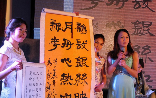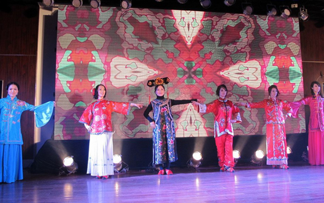 ??女教職工才藝展示,首先在市聯(lián)合藝術學校的器樂小合奏《金蛇狂舞》中拉開序幕,接著是市中心幼兒園24位女教工表演了以《秀》為主題的時裝表演,有錦園小學鐘丹卿等9人的歌伴舞《西廂聽琴》,然后是大溪四中、溫西中學、松門三小、市實驗學校、箬橫鎮(zhèn)中、松門小學等校女教師表演的書法、國畫和剪紙,并當場向臺下的領導和觀眾贈送自己的作品,許黎野副市長上臺接受禮品,并向全市女教工表示節(jié)日祝賀。聯(lián)合藝校、澤國三中、三星小學、太平小學女教師表演的古箏合奏,中間串插著給男同胞做衣服游戲,引得大家哈哈大笑。還有市職技校女教師的獨舞《翠狐》,大溪小學、岙環(huán)中學、松門三小、城北小學、市職枝校等校的中外歌曲聯(lián)唱,還有市四中、澤國四中、橫湖小學、方城小學的詩歌朗誦和大溪小學的《數(shù)蛤蟆》,最后在澤國中學、松門三小、市中心幼兒園熱鬧的歌伴舞《愛我中華》中降下帷幕。與會領導上臺向女教職工祝賀演出成功并合影留言。